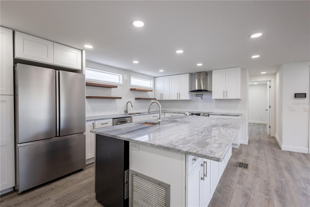 Presenting a stunningly renovated beauty in Gull-Aire Village, a sought after 55+ golf cart and pet-friendly community on the north shores of Tampa Bay! If you're searching for your piece of Floridian paradise where no expense was spared for modernized living, then look no further! This wide open floor plan home will be sure to impress with EXQUISITE UPDATES and tons of fun bells and whistles. The impressive features include: fingerprint lock access for the front and back doors, a coastal inspired kitchen with new stainless steel appliances, slide-in range with glass cooktop, dual zone beverage refrigerator, quartzite countertops, a workstation sink, a continental center island with a bar sink, and a glass canopy vent hood complete with a pot filler. Two bedrooms plus a bonus room (bonus could be made into 3rd bedroom) there's room for your imagination in how you need that space!! Bathrooms are updated with luxury vanities, gorgeous tile shower surrounds and modern fixtures. Imagine grilling your favorite ribeye in your outdoor kitchen that overlooks the community park. This tastefully designed outdoor space has stainless steel cabinets, a Kitchen-aid outdoor grill, and tall ceilings that create a quaint alfresco dining ambiance. Unexpected extras include a tankless hot water heater, new double pane windows, electric fireplace in the master with a 55' TV, HVAC 2018, and a new 200amp electrical panel with disconnect. Gull-Aire Village is a land-owned community which equates to the low-cost monthly maintenance fees for those seeking an affordable option in an active community. Community amenities include a heated pool, clubhouse, shuffleboard courts, and bonus social events to mingle with your neighbors. Conveniently located near America's best beaches, local dining establishments, shopping, medical care facilities, grocery stores and more! Schedule your private showing today!